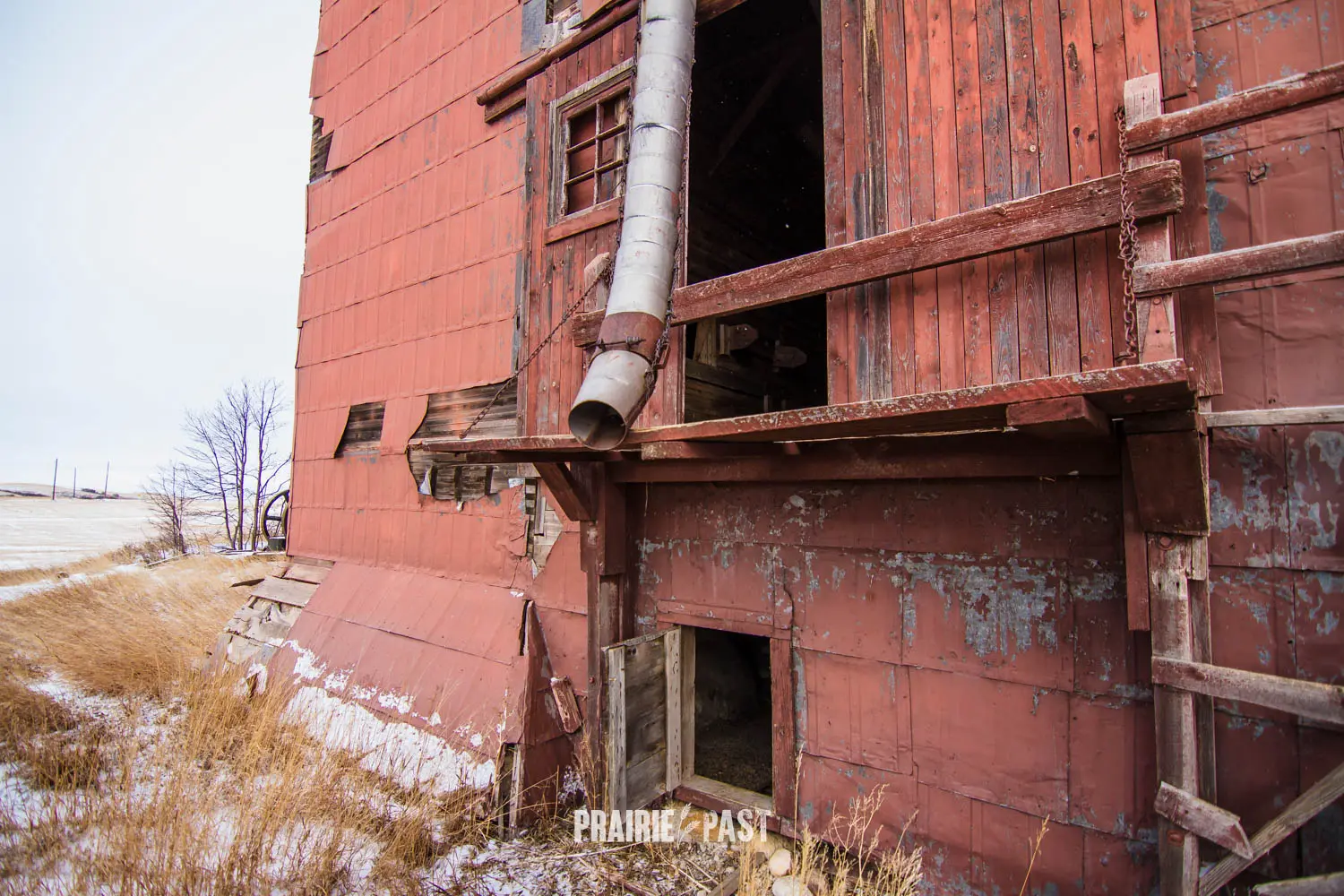 One of Brooking’s most recognizable landmarks was its grain elevator, a structure that stands as both a symbol of prairie agriculture and a focal point of daily life. Long after Brooking declined, the elevator gained a unique place in Saskatchewan culture when it was used as a filming location for the 1999 movie Revenge of the Land. The elevator’s weathered exterior and isolated prairie setting provided an authentic backdrop. The elevator was repainted with the logos of "Hawke and Co" and "Promise" for the filming, which you can still see today. This film appearance helped preserve Brooking’s legacy in a way few ghost towns ever experience.