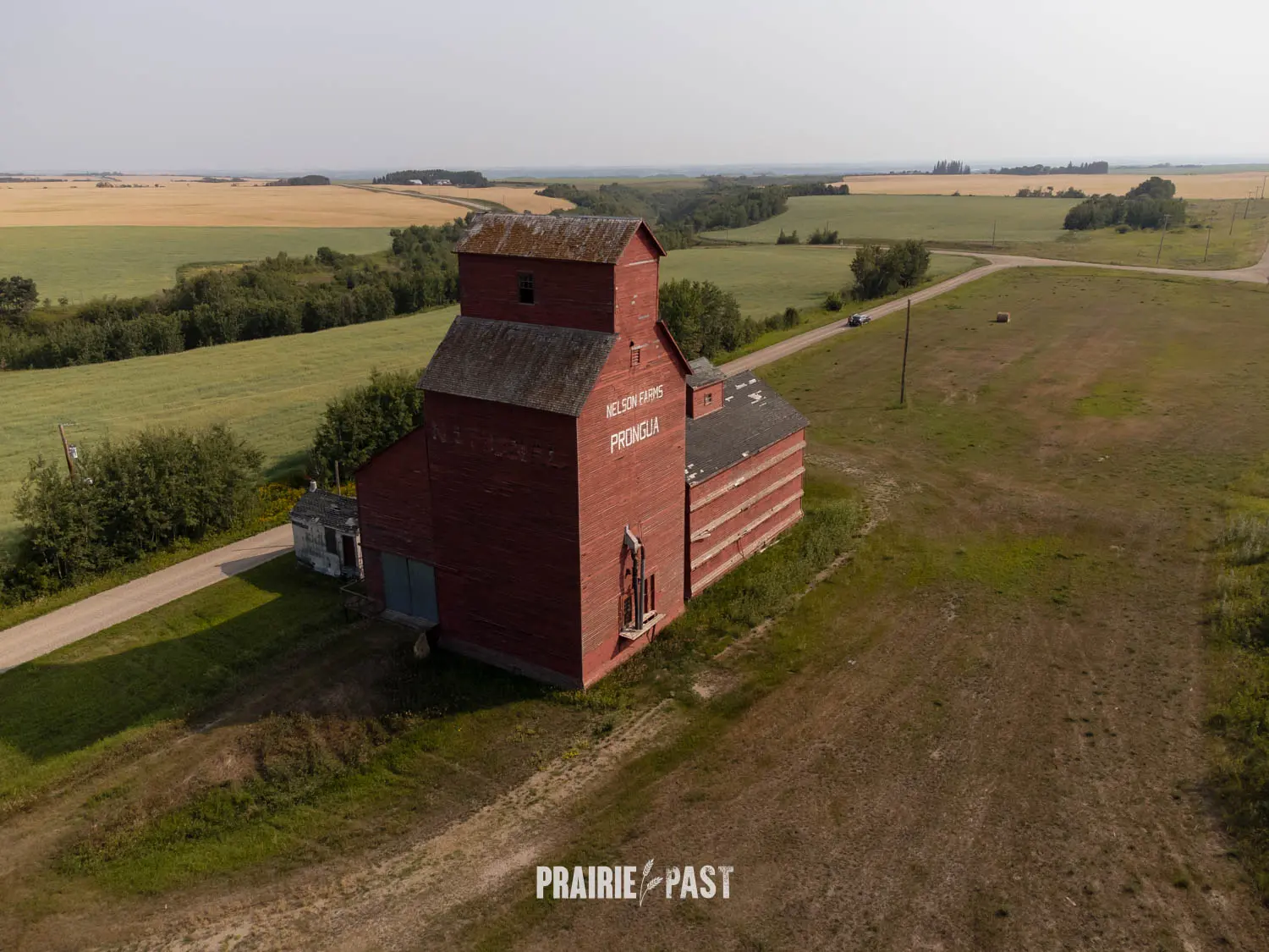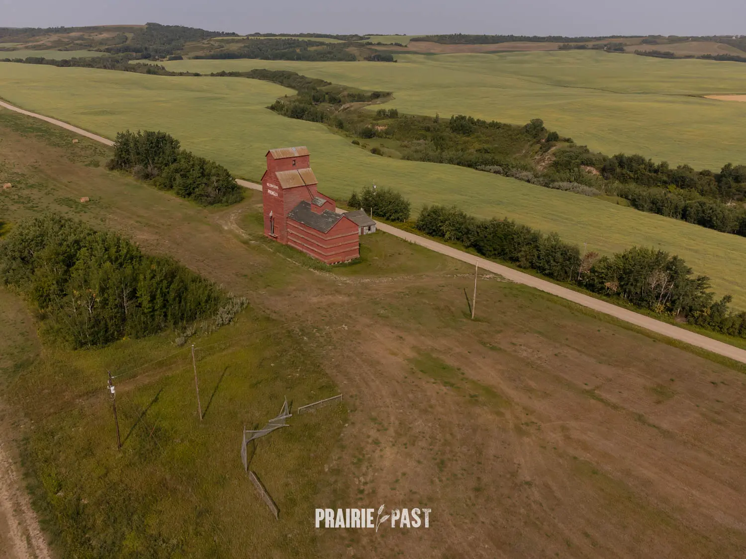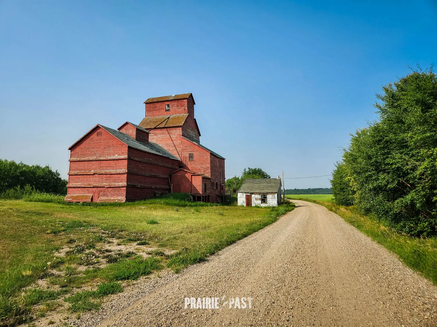 Driving across the Saskatchewan prairies, it’s hard to miss the towering silhouettes of old wooden grain elevators. Just off the tracks at Prongua, Saskatchewan, one such elevator still stands, weathered and silent, marking the spot where a small but vibrant farming community once thrived.