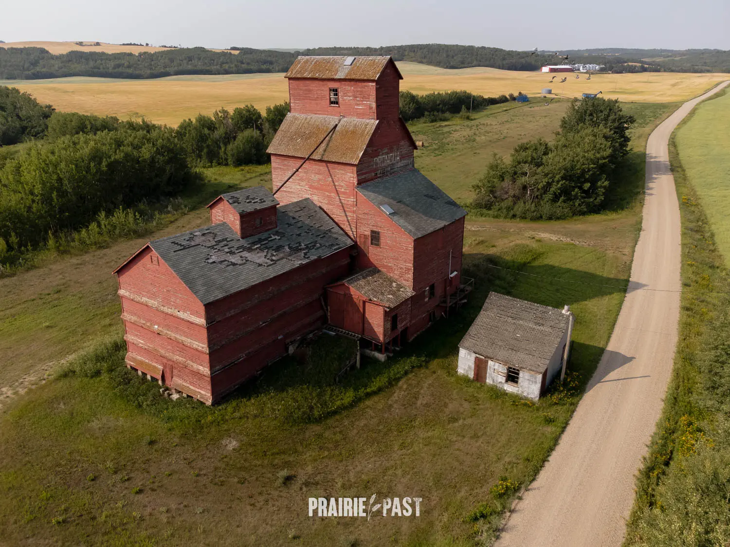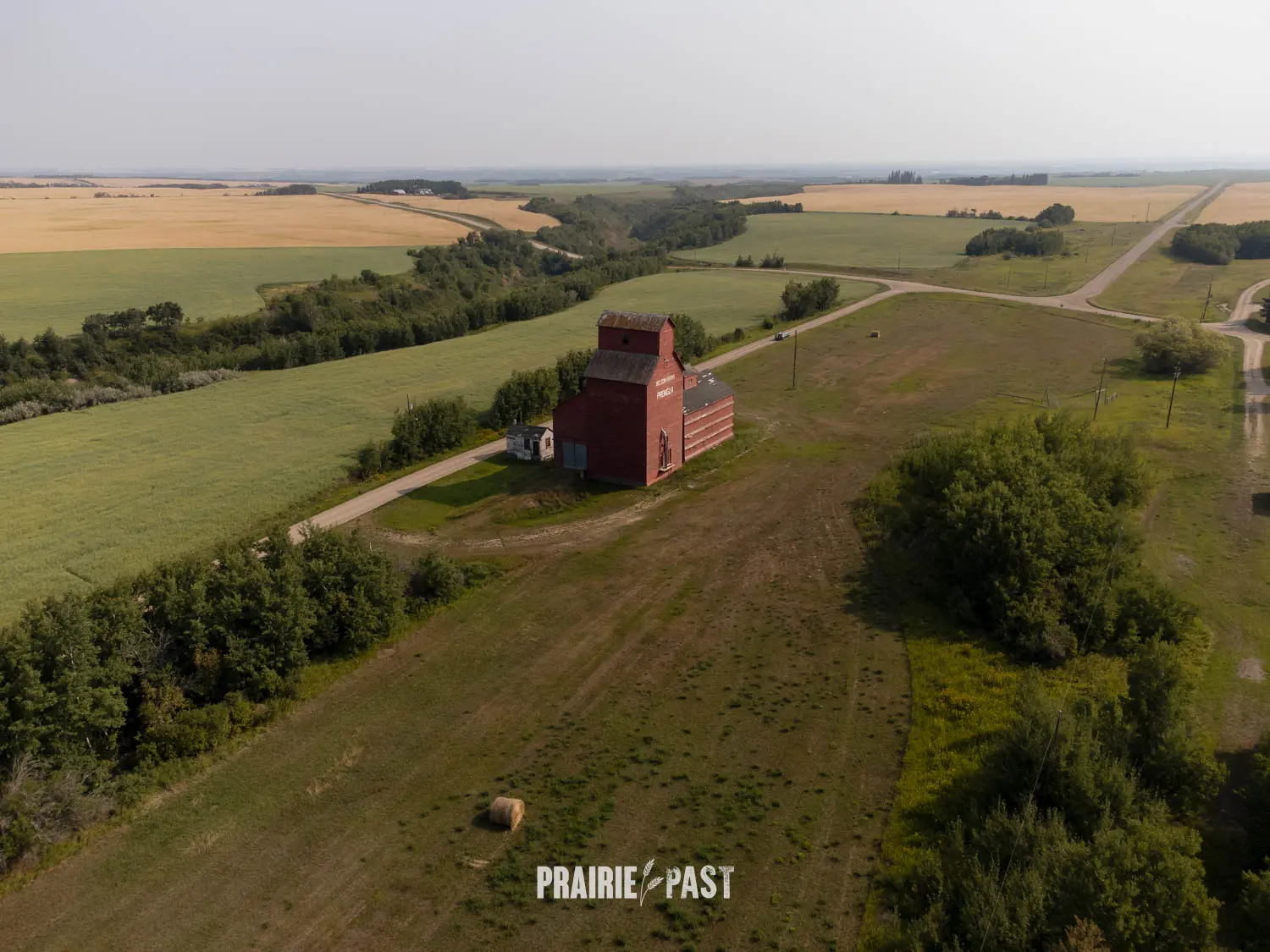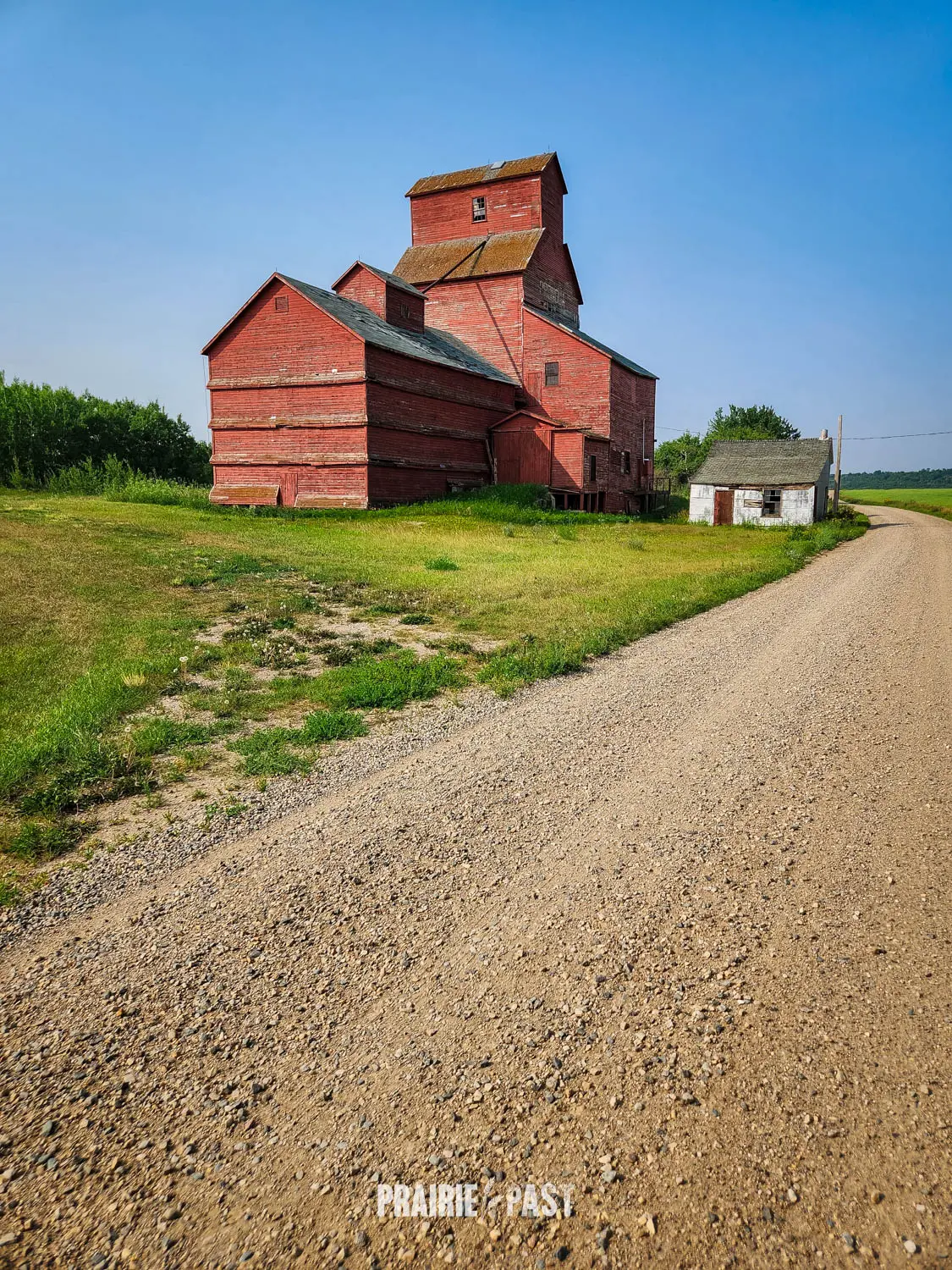 Driving across the Saskatchewan prairies, it’s hard to miss the towering silhouettes of old wooden grain elevators. Just off the tracks at Prongua, Saskatchewan, one such elevator still stands, weathered and silent, marking the spot where a small but vibrant farming community once thrived.