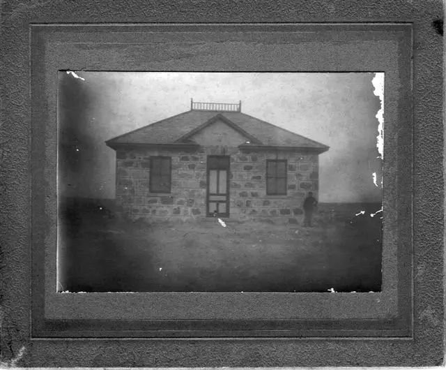 A historic photo of the schoolhouse.