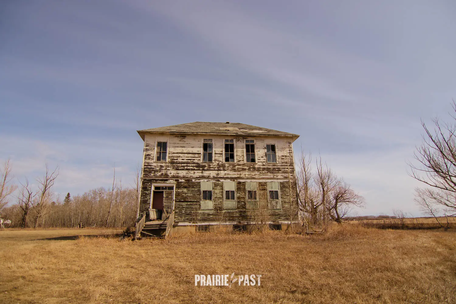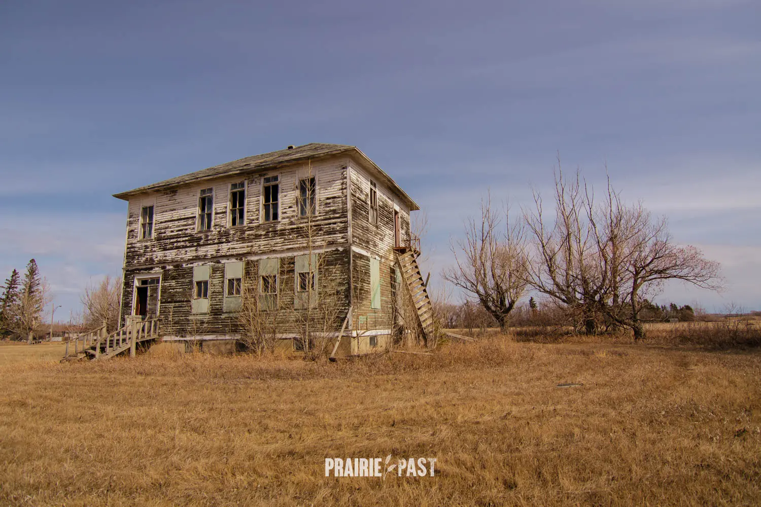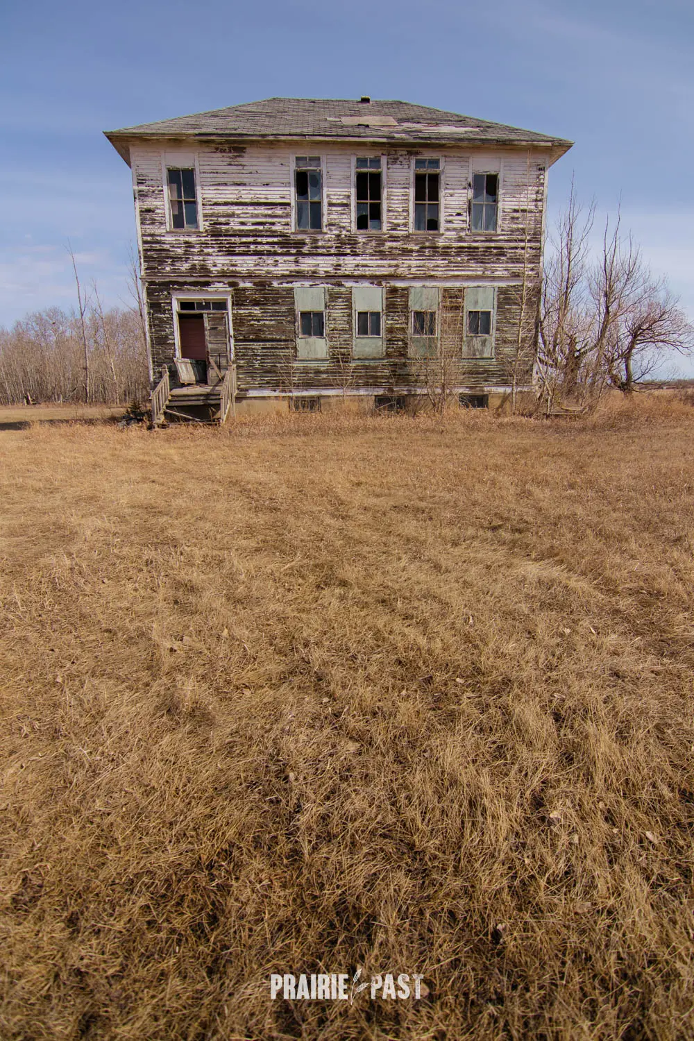 We have visited countless schoolhouses on the prairies. Most are one-storey buildings built of wood, brick, and sometimes fieldstone. Imagine our surprise when we discovered this two-story wooden schoolhouse in the small town of Stornoway, Saskatchewan. It was years ago when we first visited this school and we continued to visit when we were in the area. It was always secured and not much changed. A unique piece of history.
