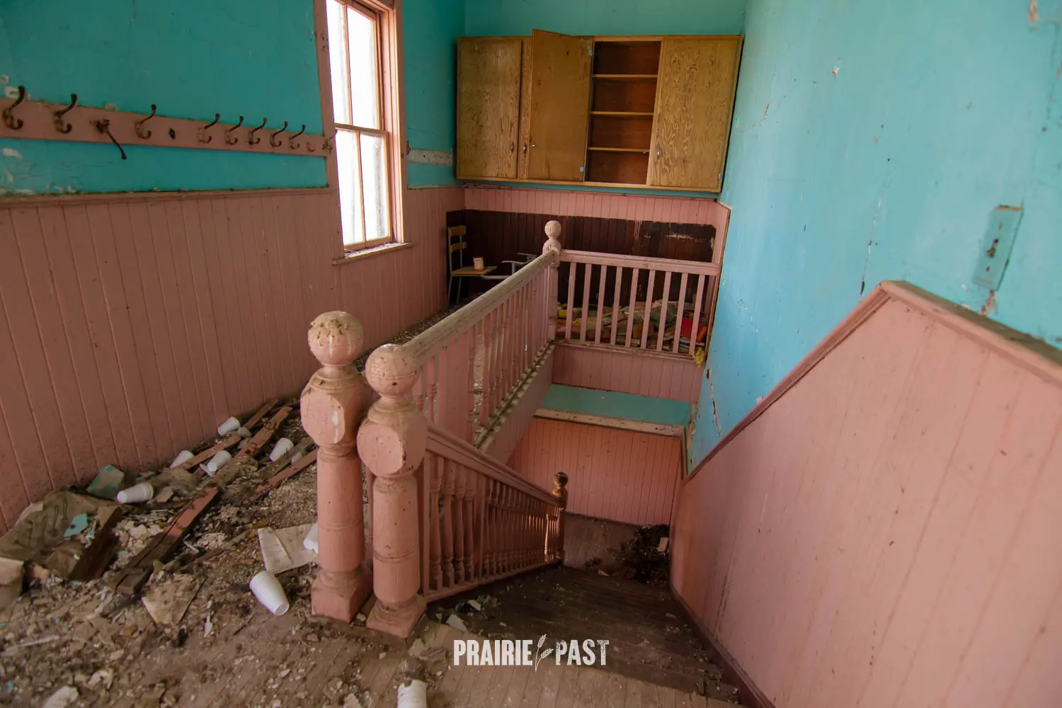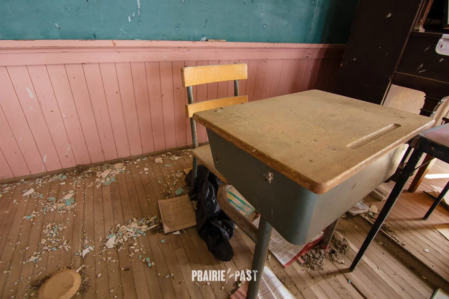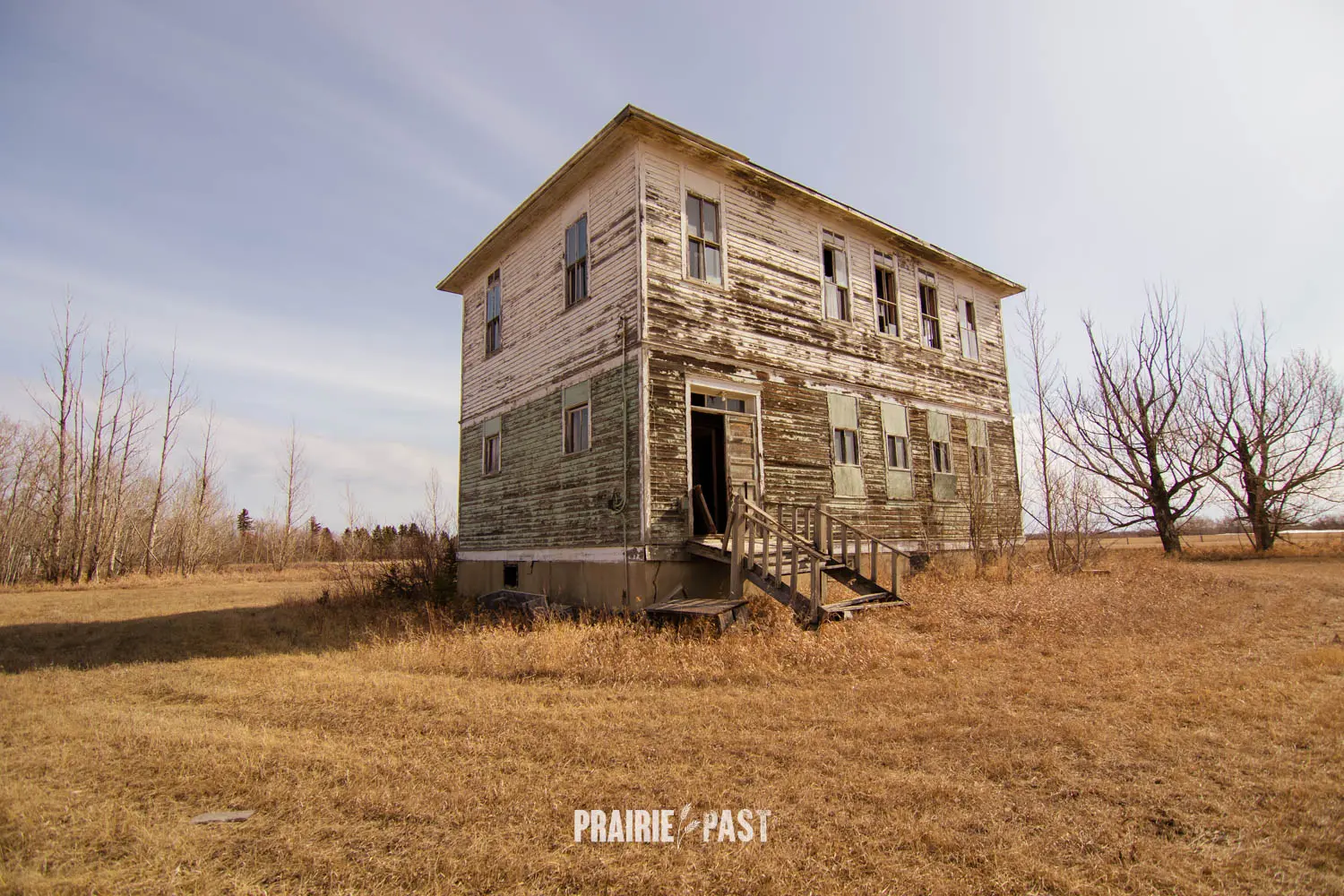 We have visited countless schoolhouses on the prairies. Most are one-storey buildings built of wood, brick, and sometimes fieldstone. Imagine our surprise when we discovered this two-story wooden schoolhouse in the small town of Stornoway, Saskatchewan. It was years ago when we first visited this school and we continued to visit when we were in the area. It was always secured and not much changed. A unique piece of history.