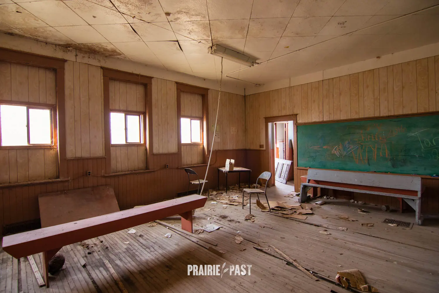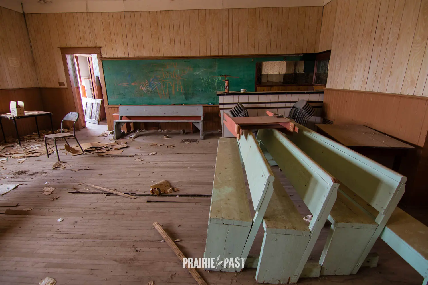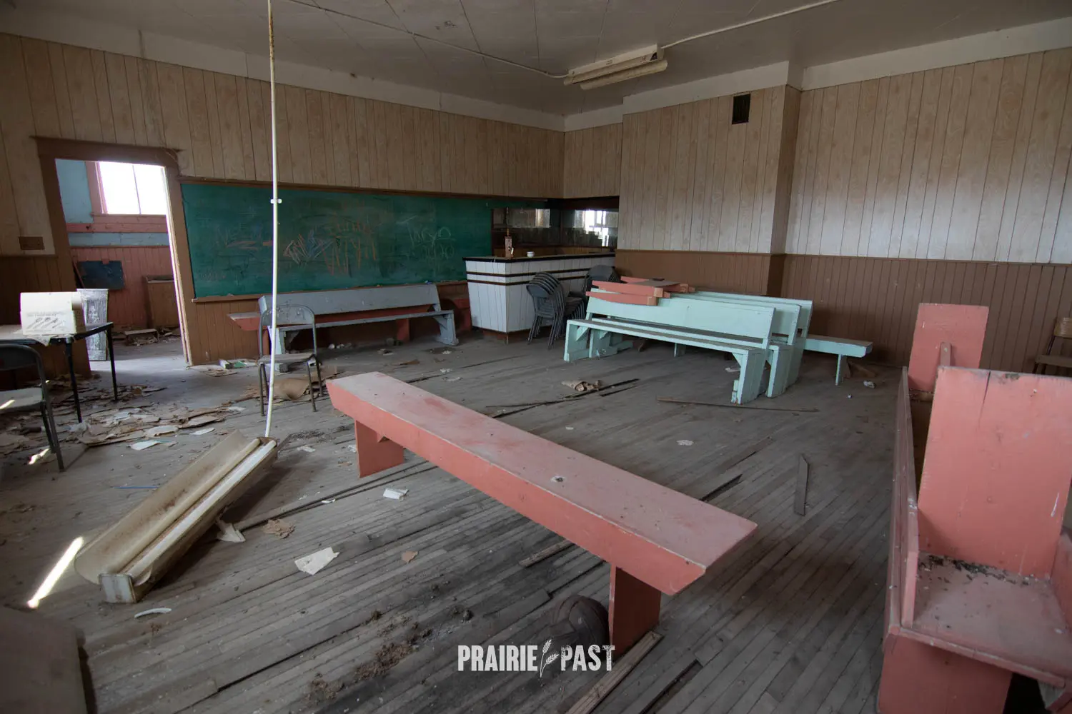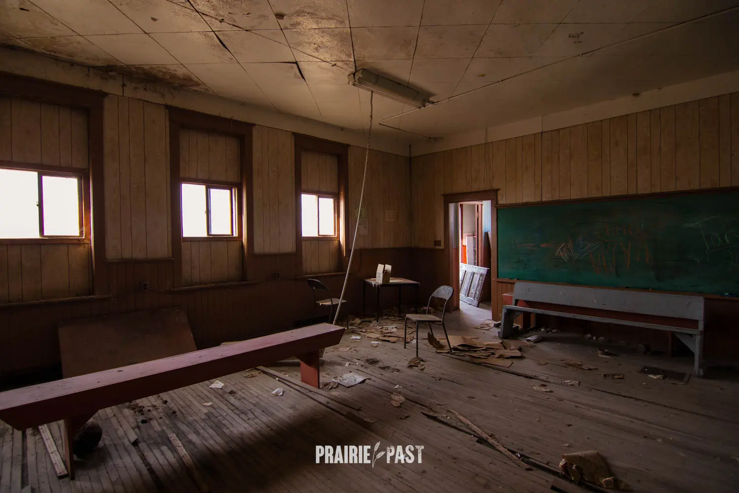 A few years ago we stopped by and the door had been pried off. Although sad to see this type of vandalism, this was our opportunity to document the inside. Based on the interior we could see that after it was done being a school it was used by the community before being abandoned. We took the time to do a full walkthrough inside with photos and video and we put the door back as best we good. It was thankfully sealed up not long after our visit.