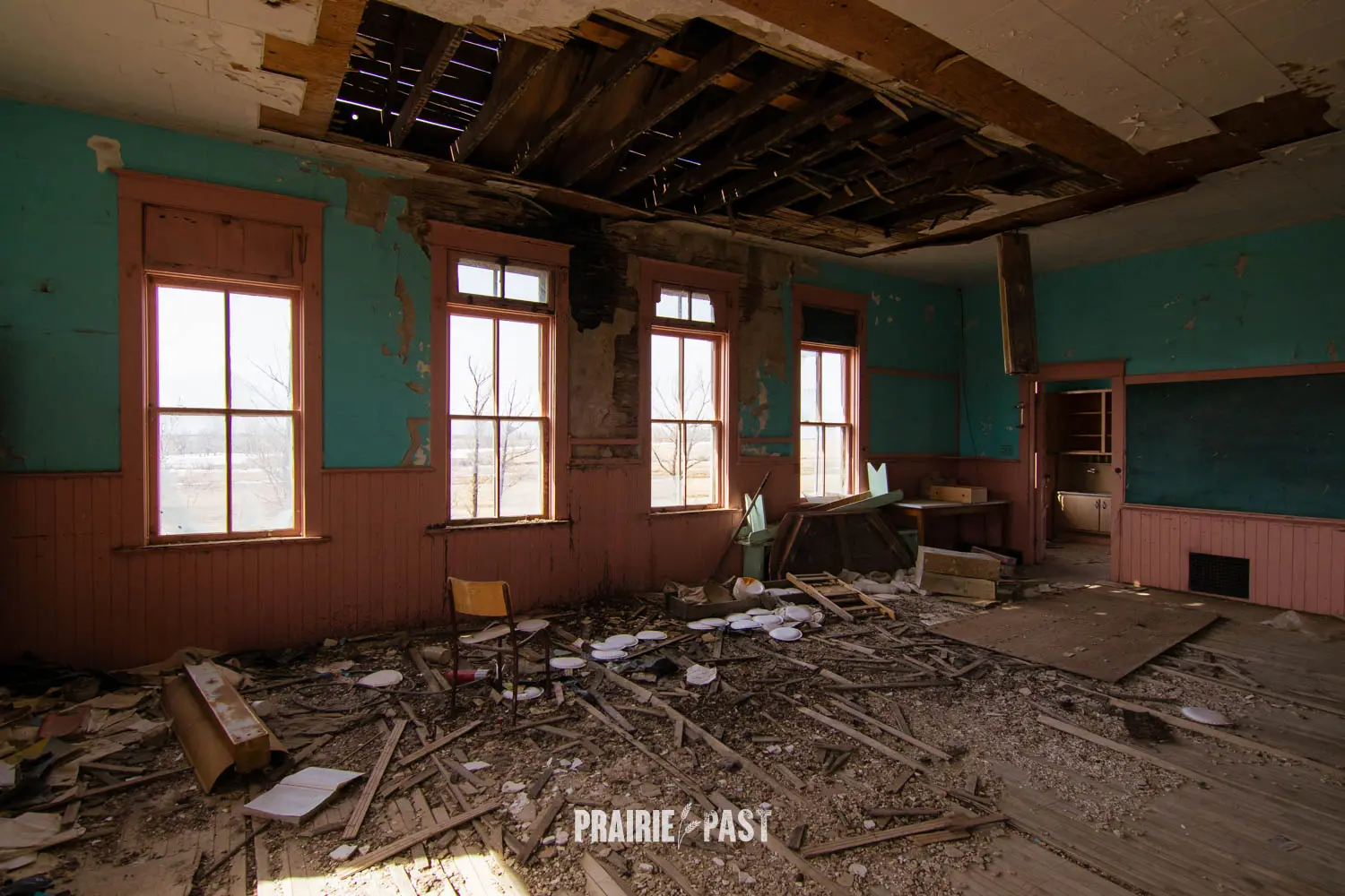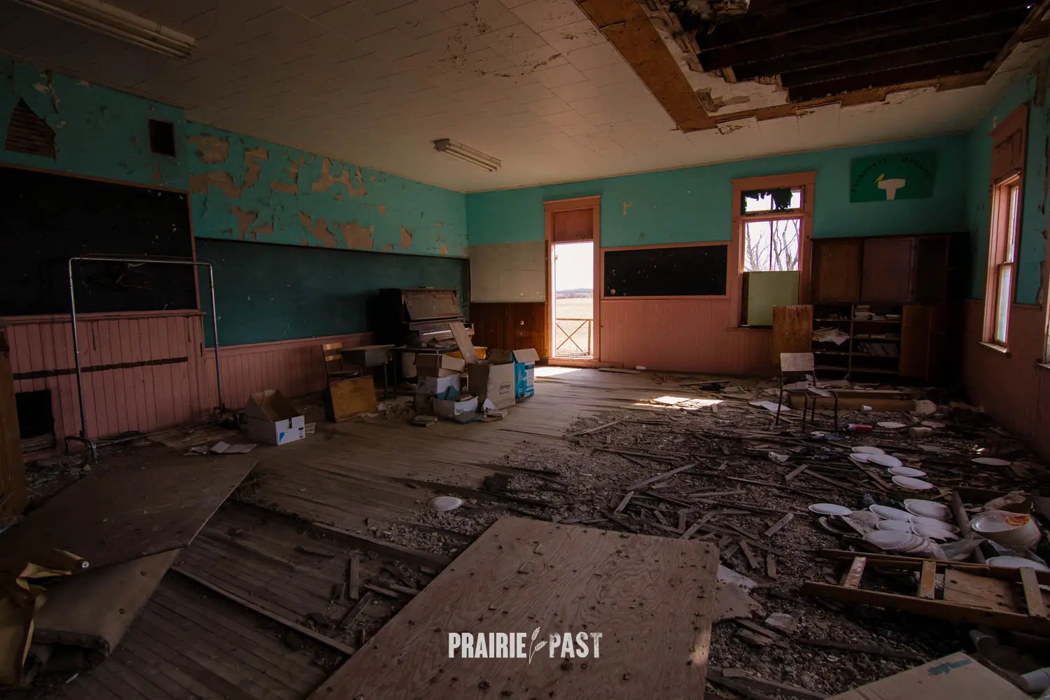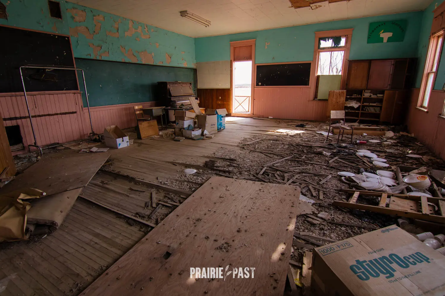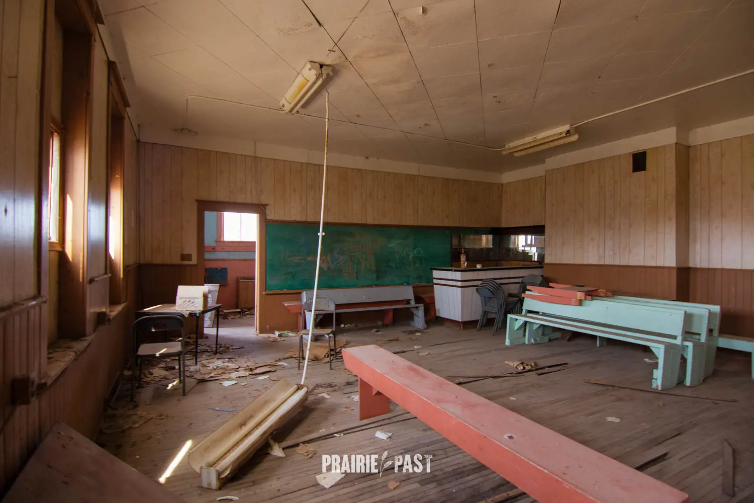 A few years ago we stopped by and the door had been pried off. Although sad to see this type of vandalism, this was our opportunity to document the inside. Based on the interior we could see that after it was done being a school it was used by the community before being abandoned. We took the time to do a full walkthrough inside with photos and video and we put the door back as best we good. It was thankfully sealed up not long after our visit.