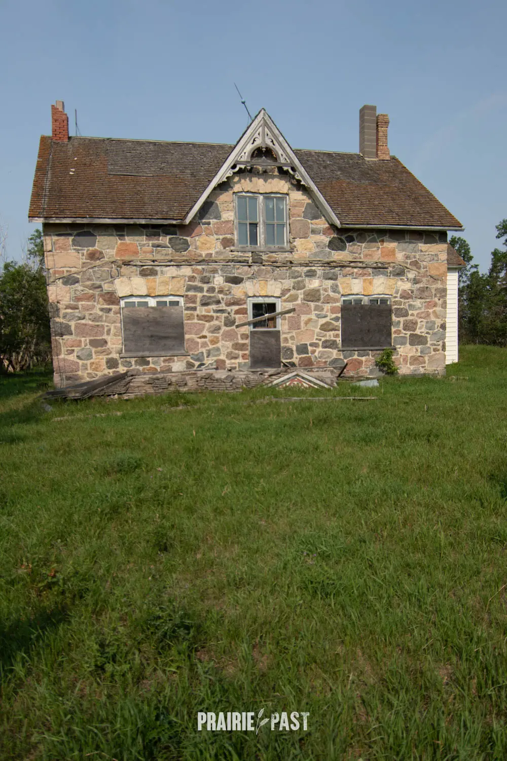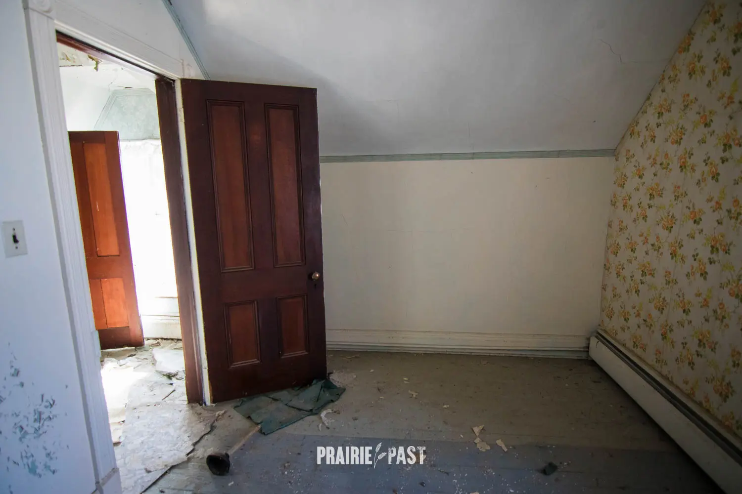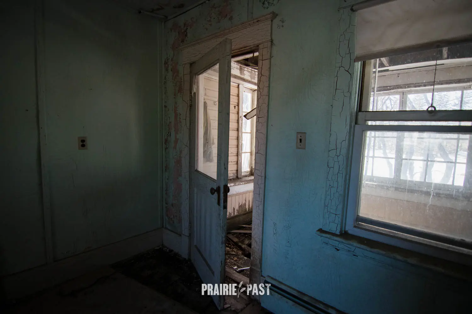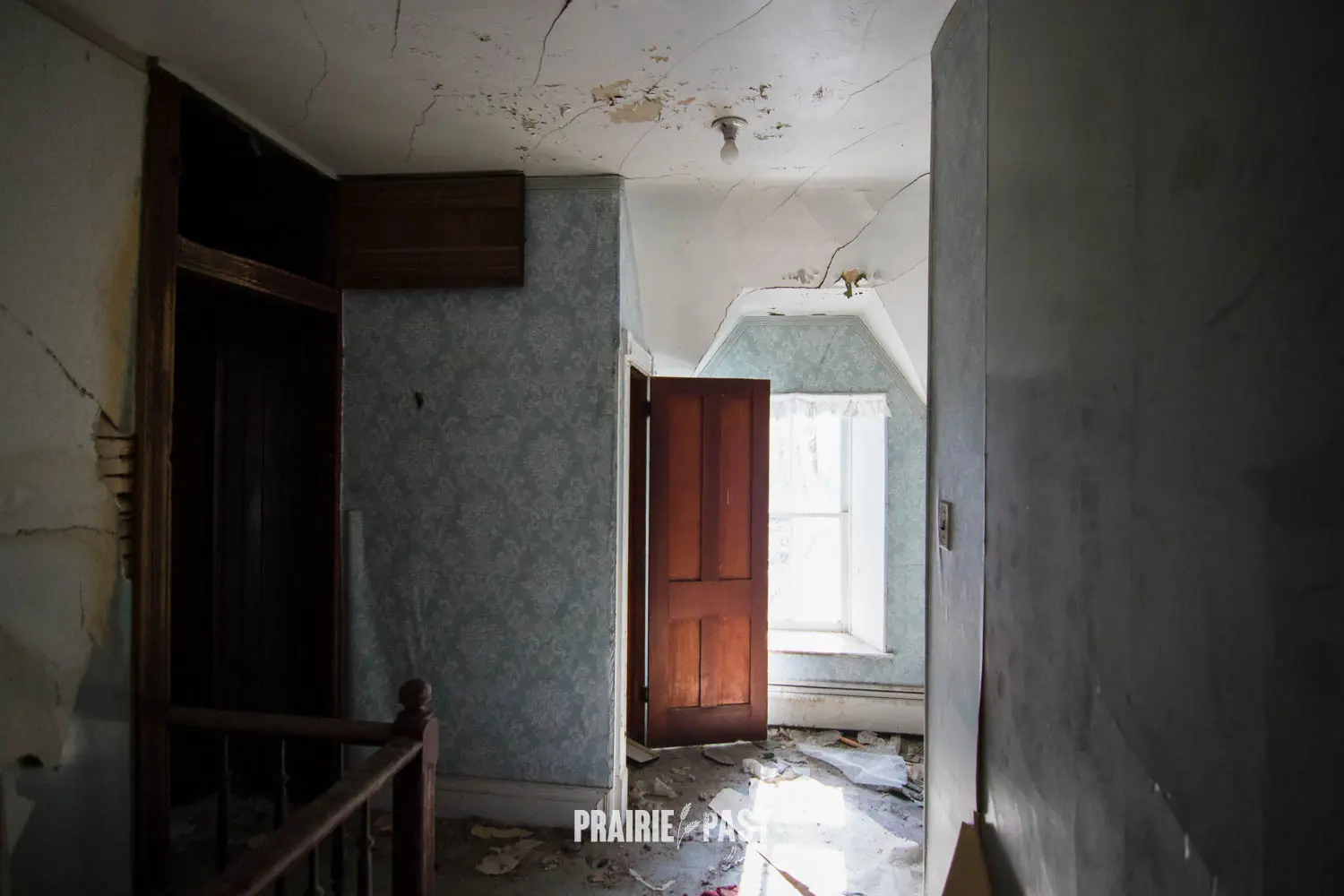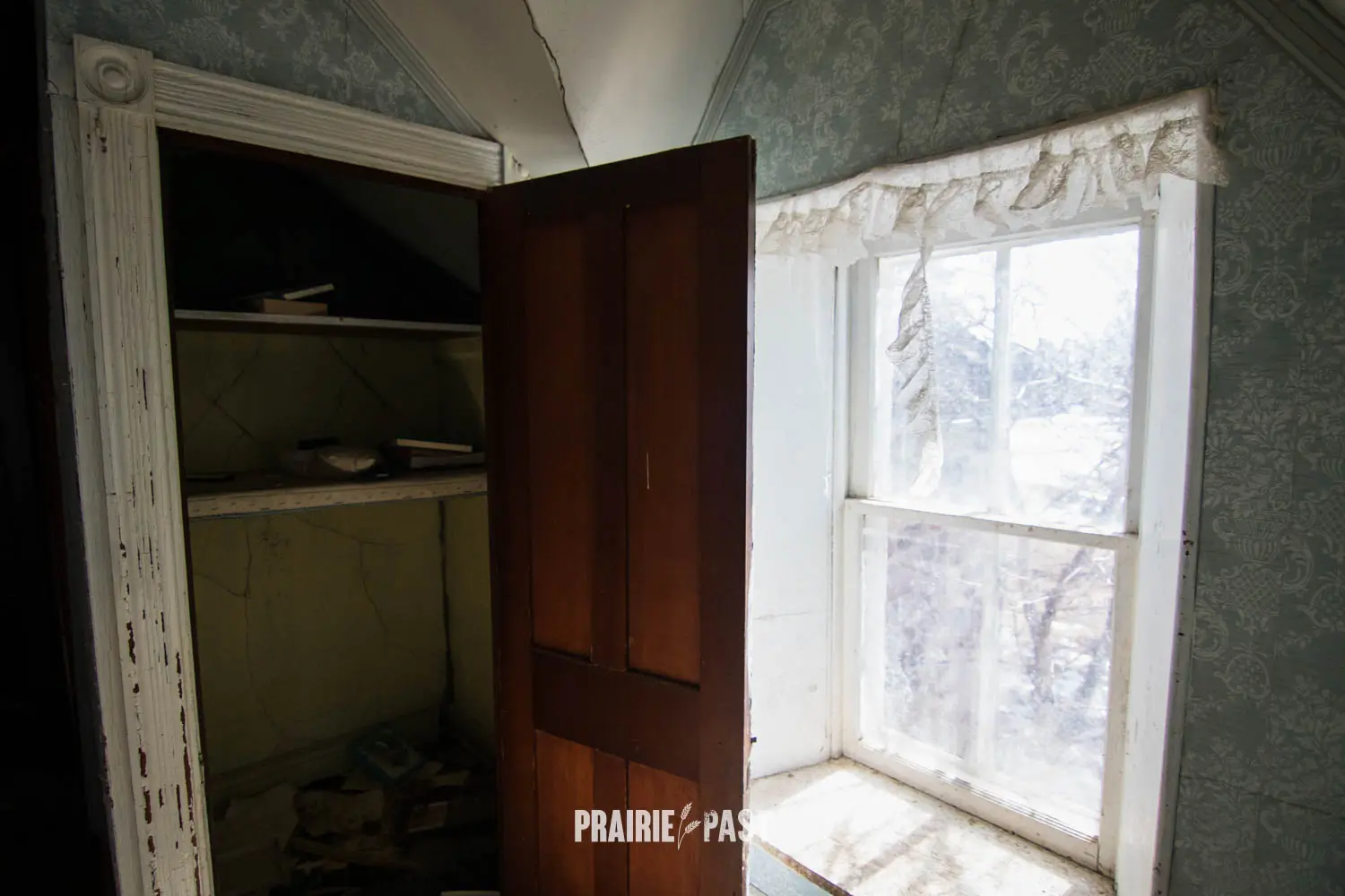 This house is set off the road a bit and is fenced and we did not want to trespass. After years of passing by when we were in the area, we made a connection with another explorer and got permission to access the site. It was for sale and went to visit with the new potential owners. When we reached the property it had an original small house and a large house which was a stone house with a large addition on the side/back. We did a full walkthrough and were able to come back one more time after the people we had originally gone with purchased the house.