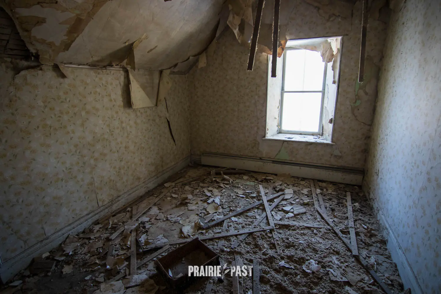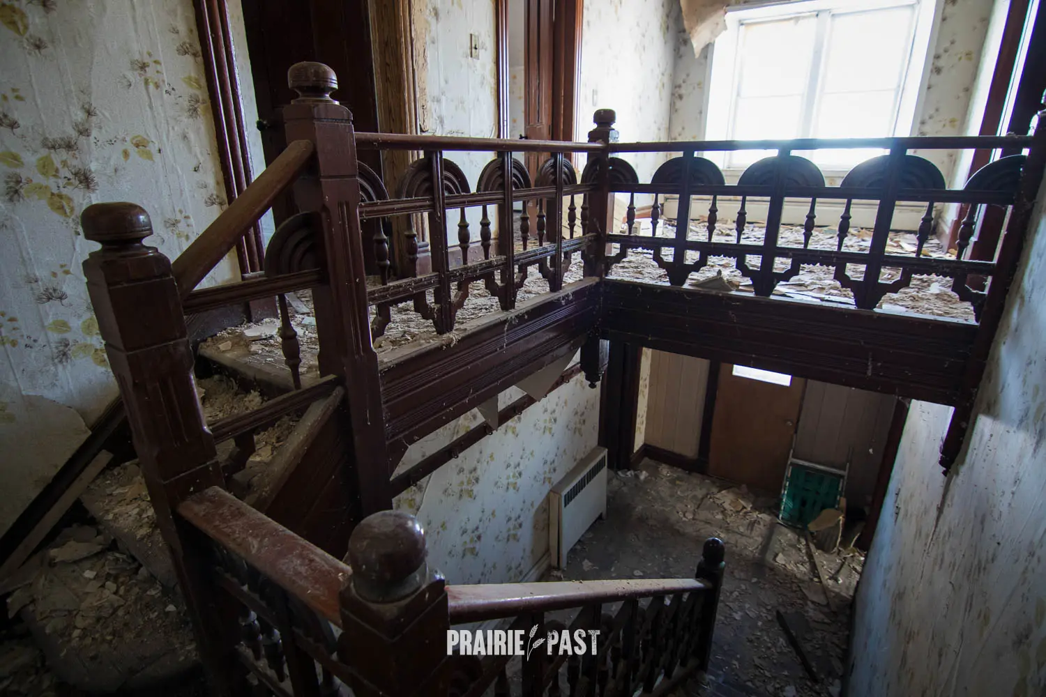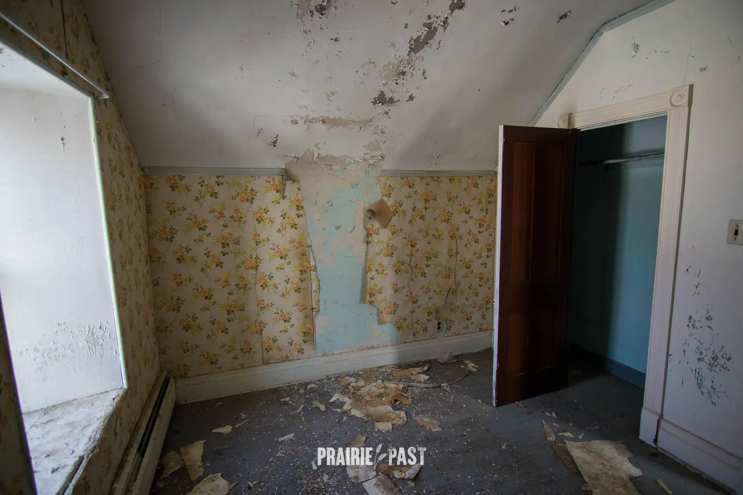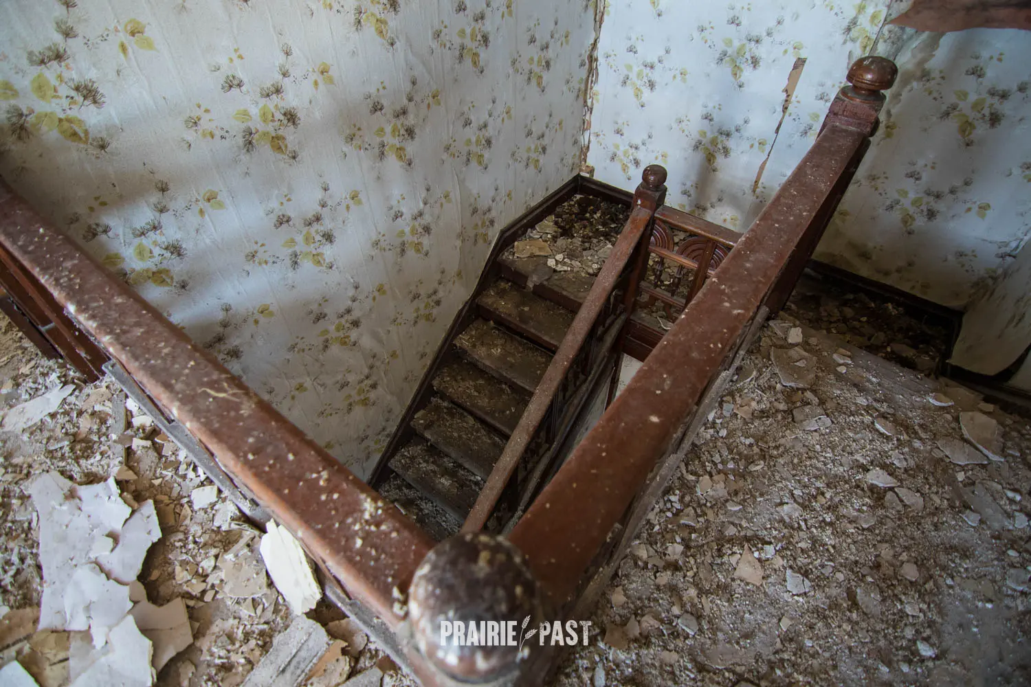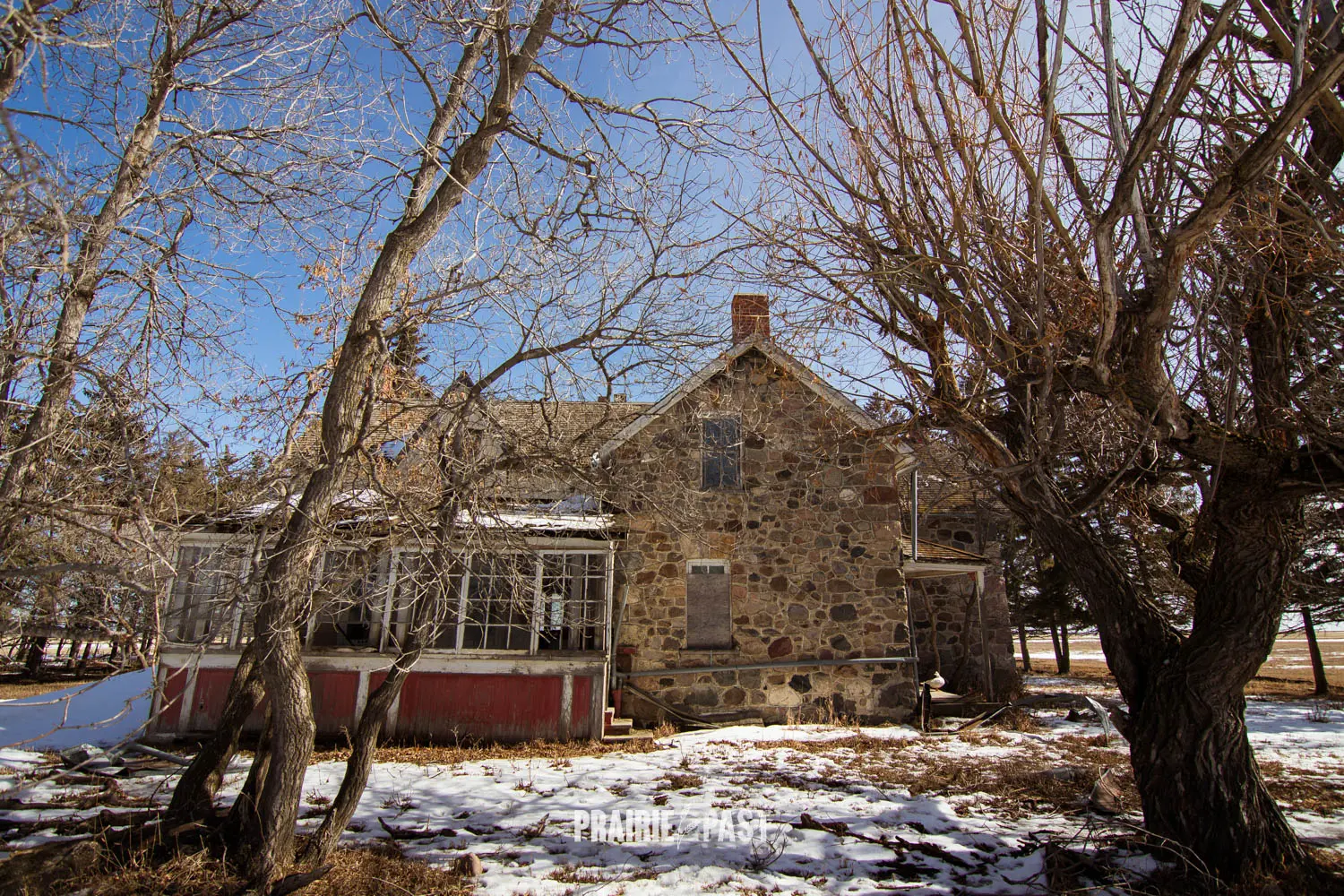 This house is set off the road a bit and is fenced and we did not want to trespass. After years of passing by when we were in the area, we made a connection with another explorer and got permission to access the site. It was for sale and went to visit with the new potential owners. When we reached the property it had an original small house and a large house which was a stone house with a large addition on the side/back. We did a full walkthrough and were able to come back one more time after the people we had originally gone with purchased the house.