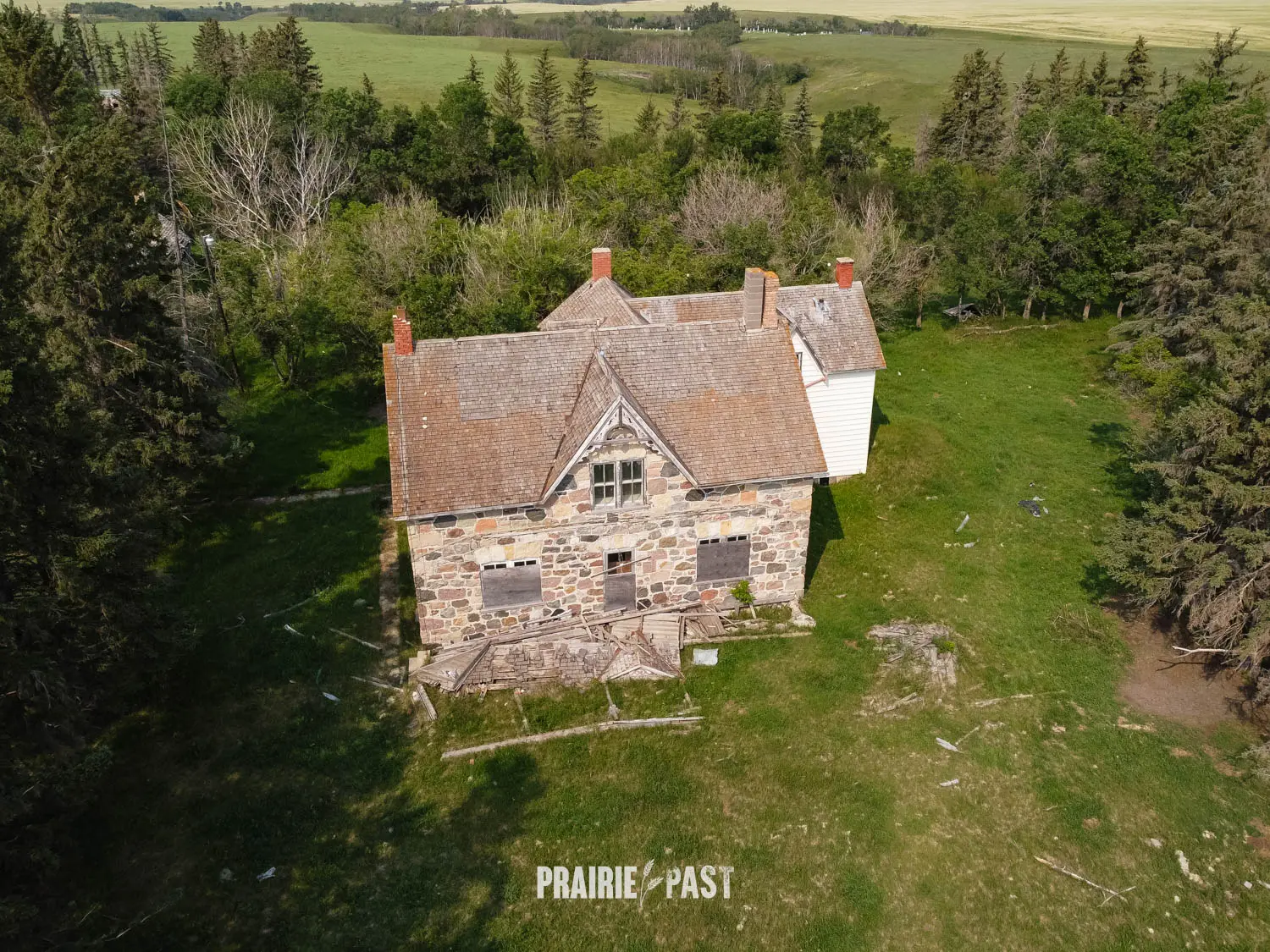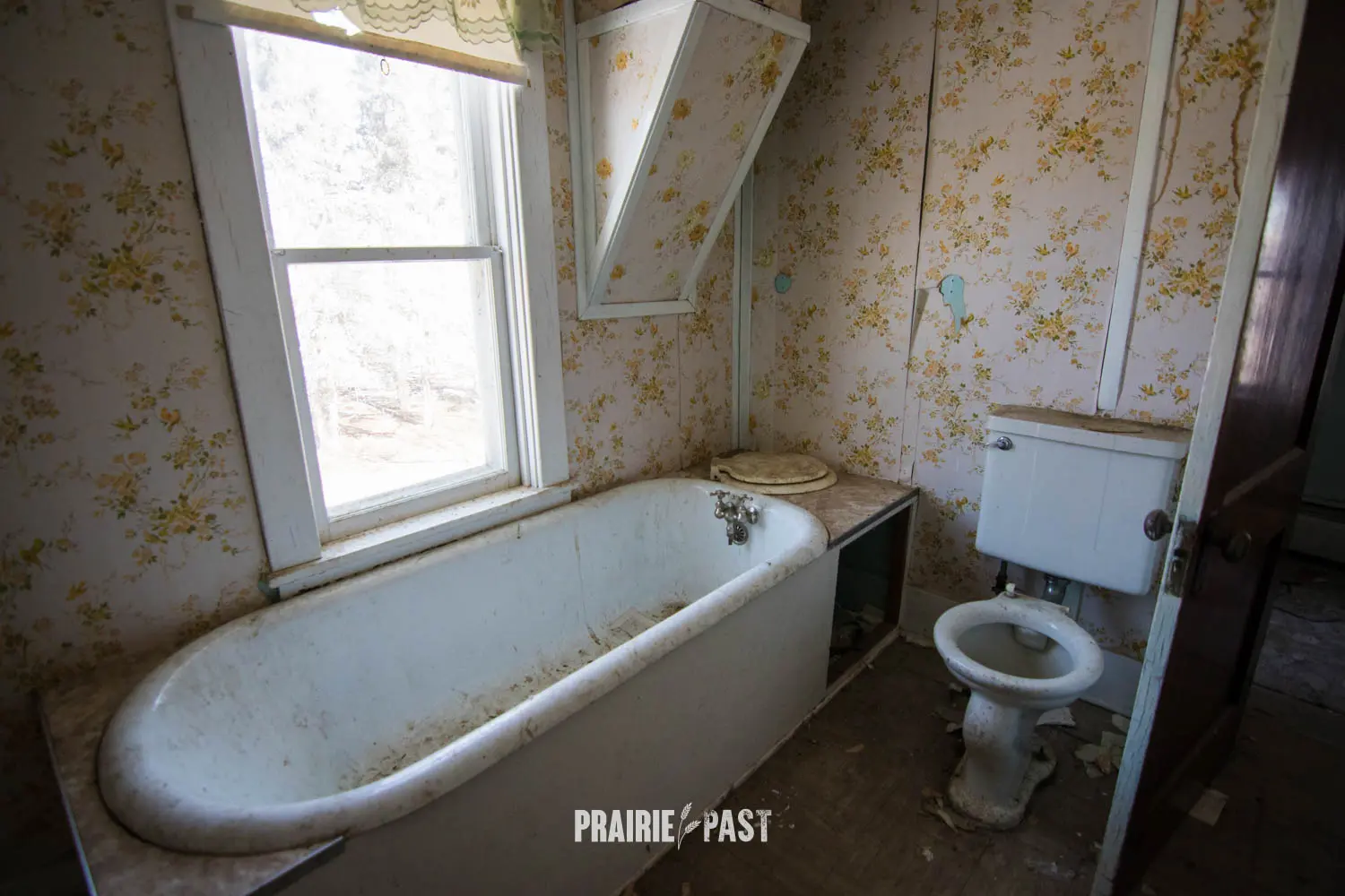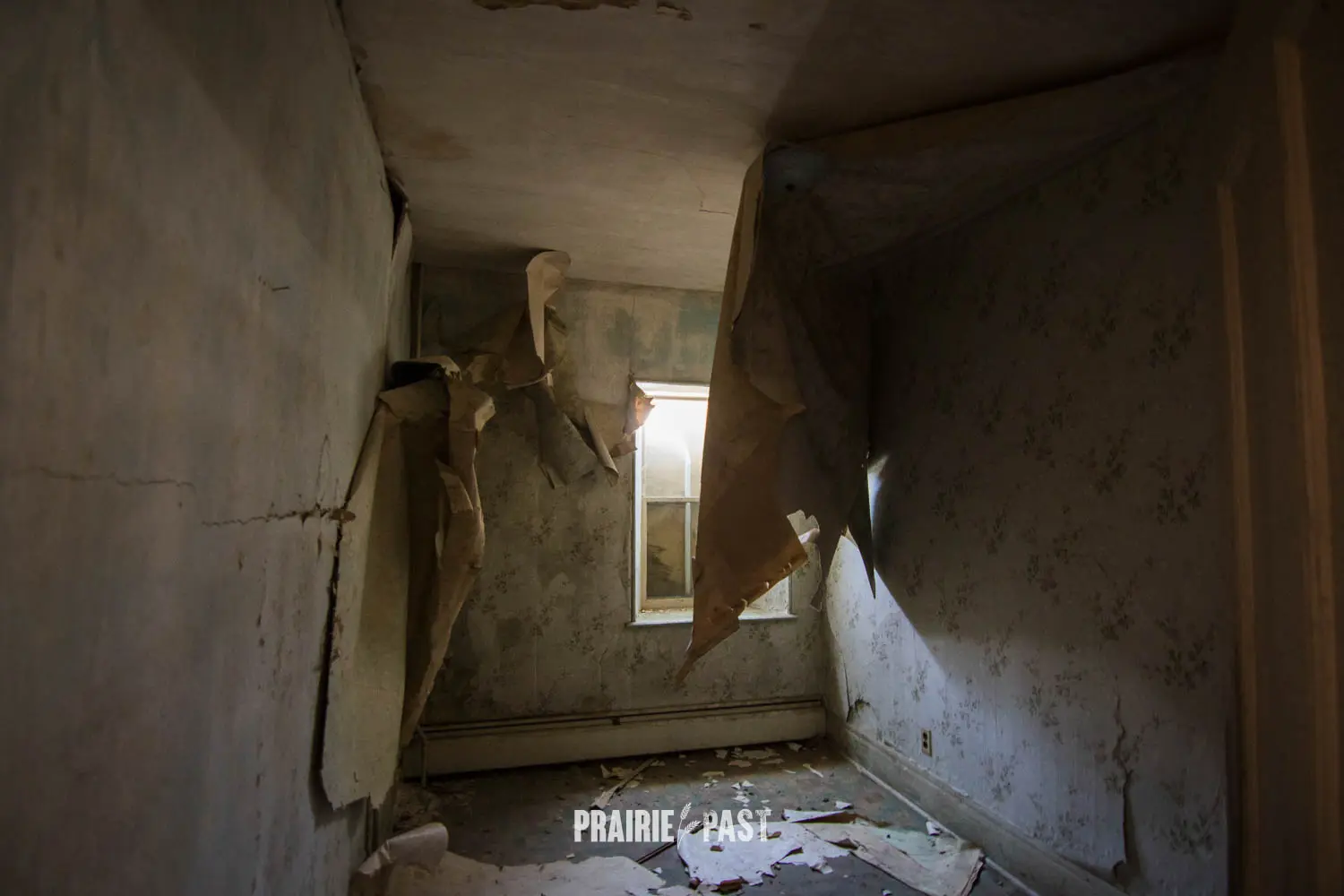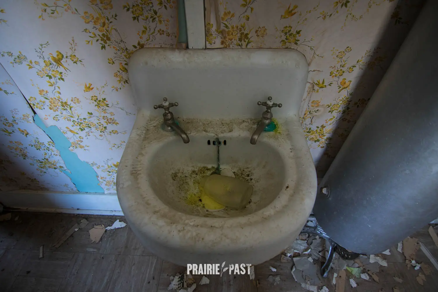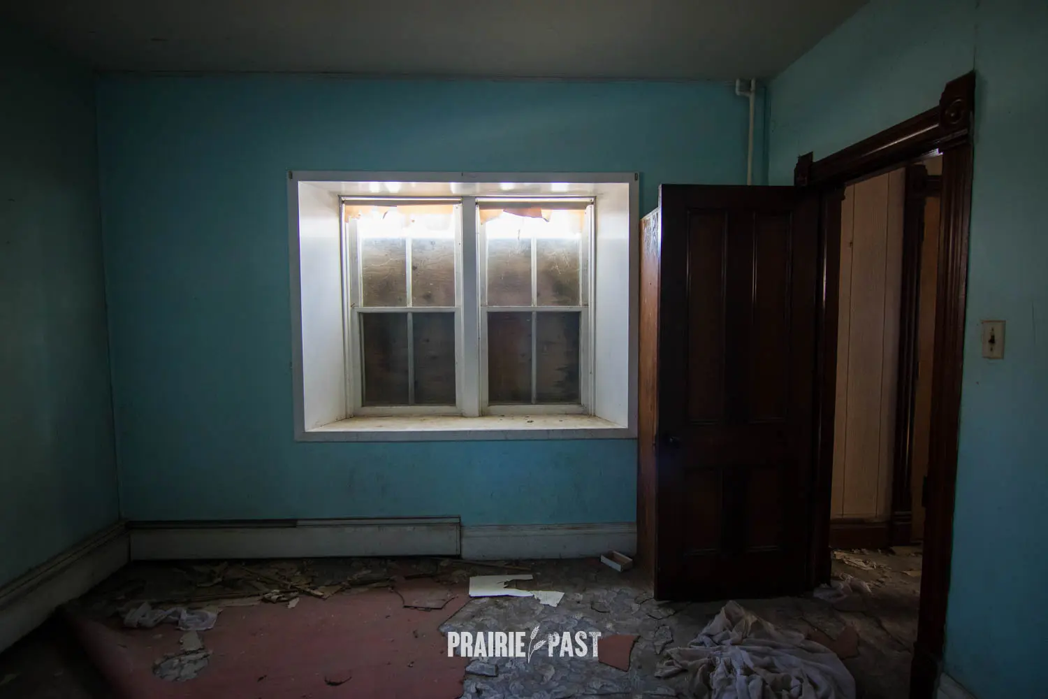 This house is set off the road a bit and is fenced and we did not want to trespass. After years of passing by when we were in the area, we made a connection with another explorer and got permission to access the site. It was for sale and went to visit with the new potential owners. When we reached the property it had an original small house and a large house which was a stone house with a large addition on the side/back. We did a full walkthrough and were able to come back one more time after the people we had originally gone with purchased the house.