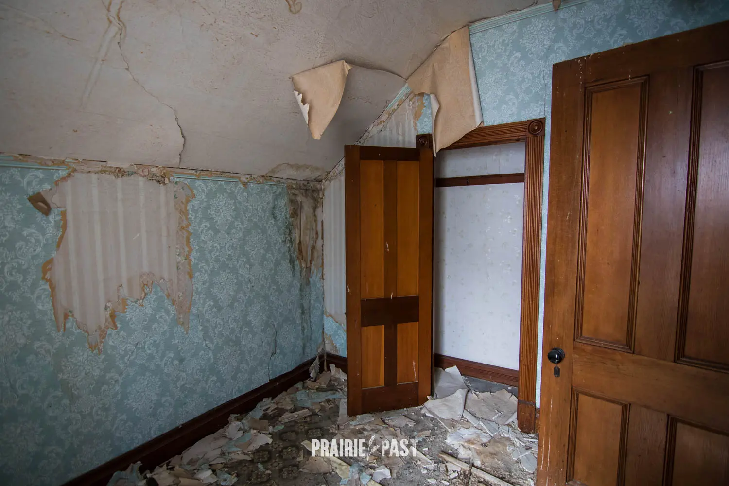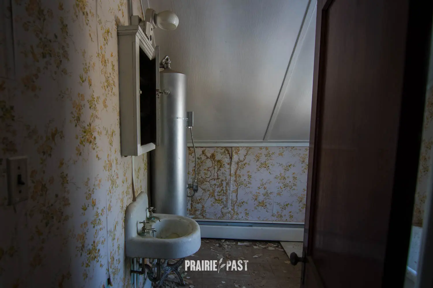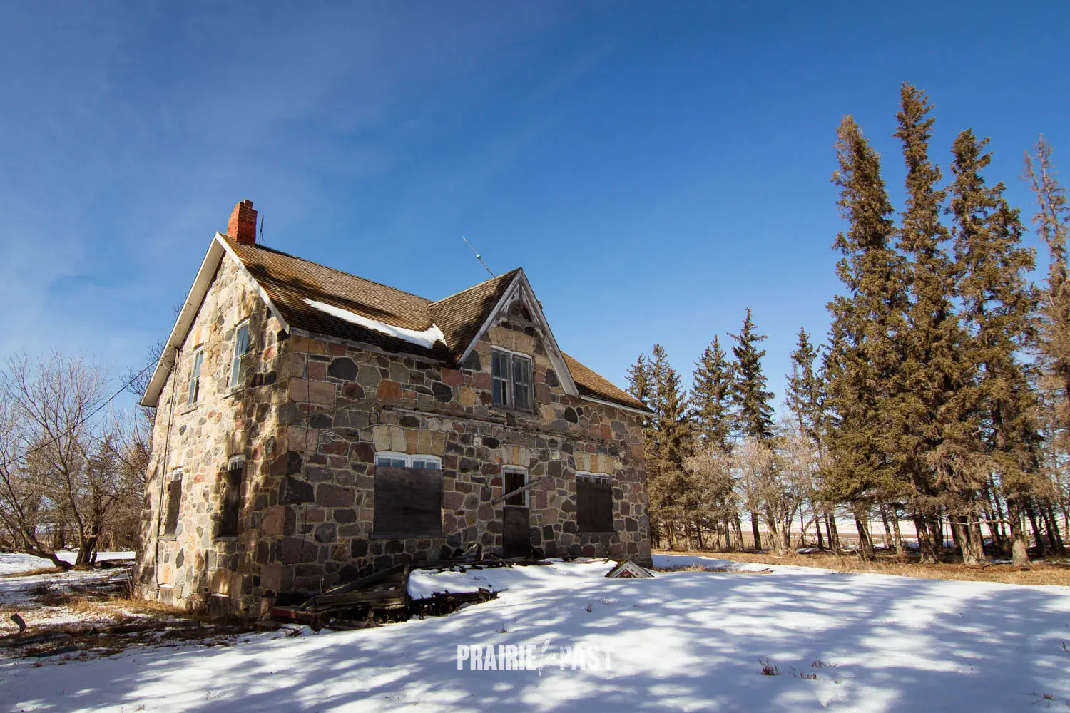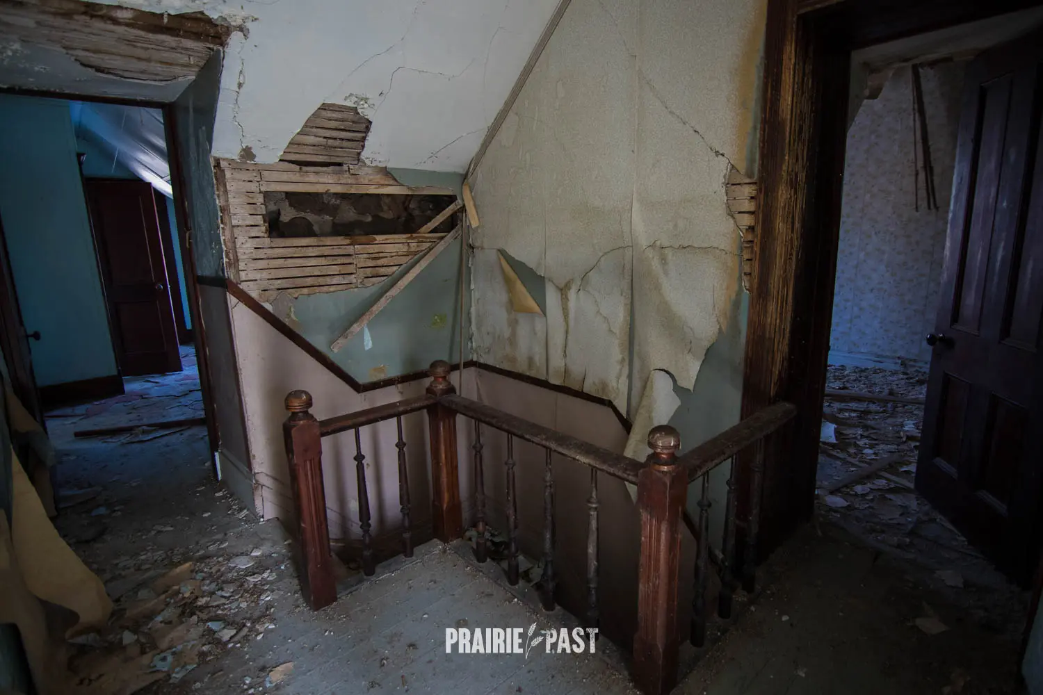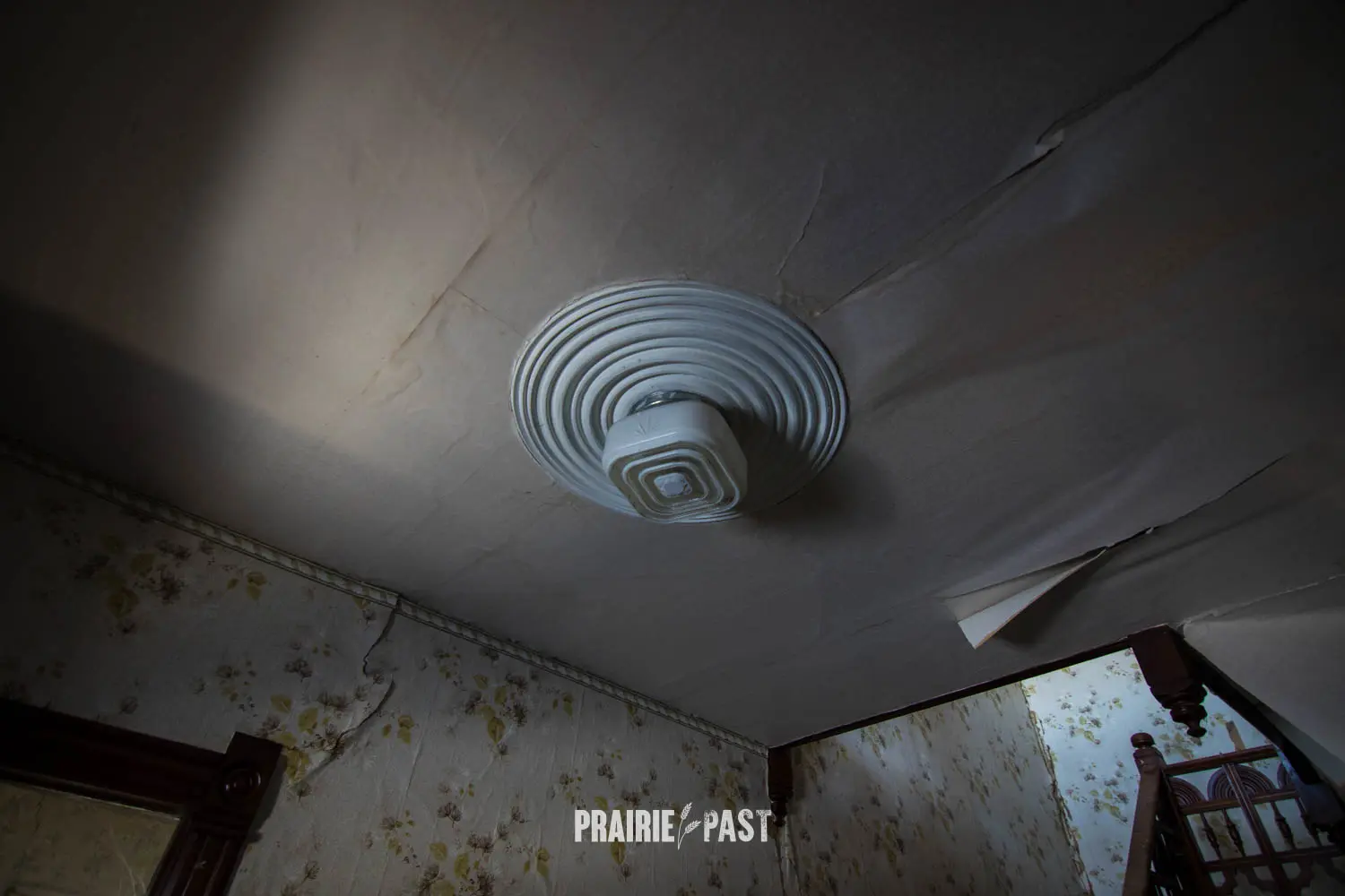 This house is set off the road a bit and is fenced and we did not want to trespass. After years of passing by when we were in the area, we made a connection with another explorer and got permission to access the site. It was for sale and went to visit with the new potential owners. When we reached the property it had an original small house and a large house which was a stone house with a large addition on the side/back. We did a full walkthrough and were able to come back one more time after the people we had originally gone with purchased the house.