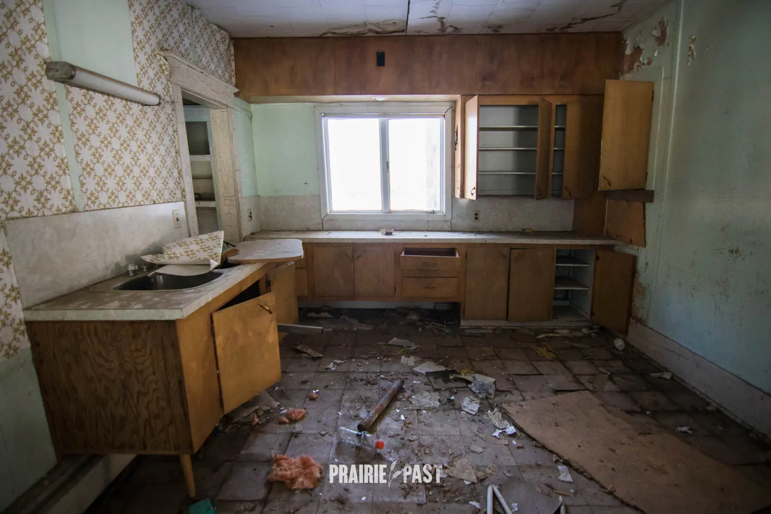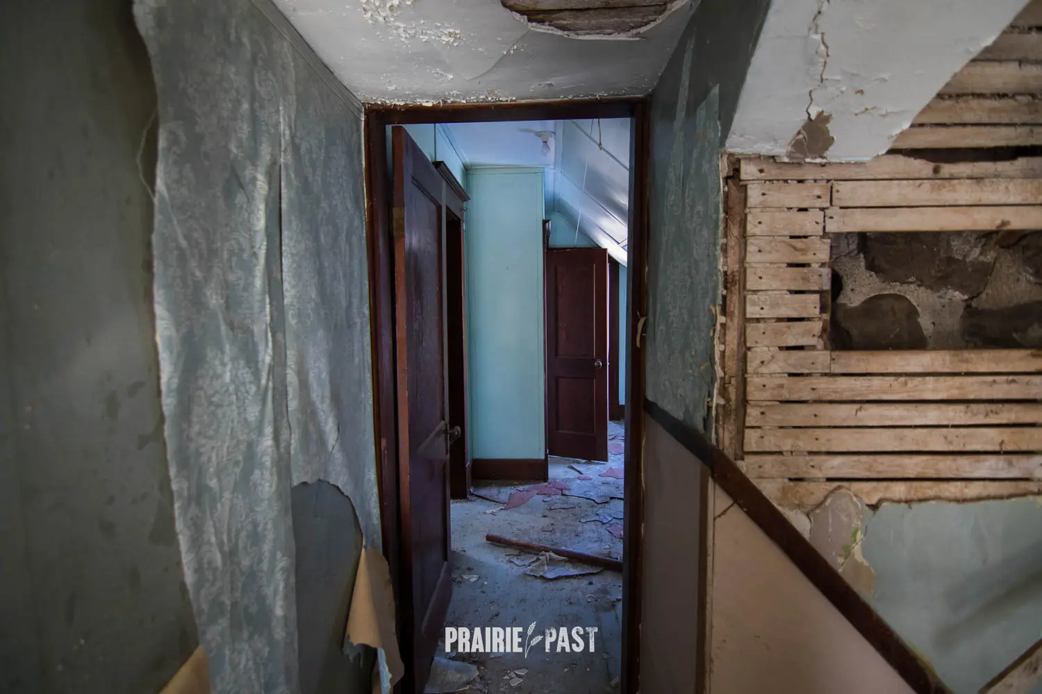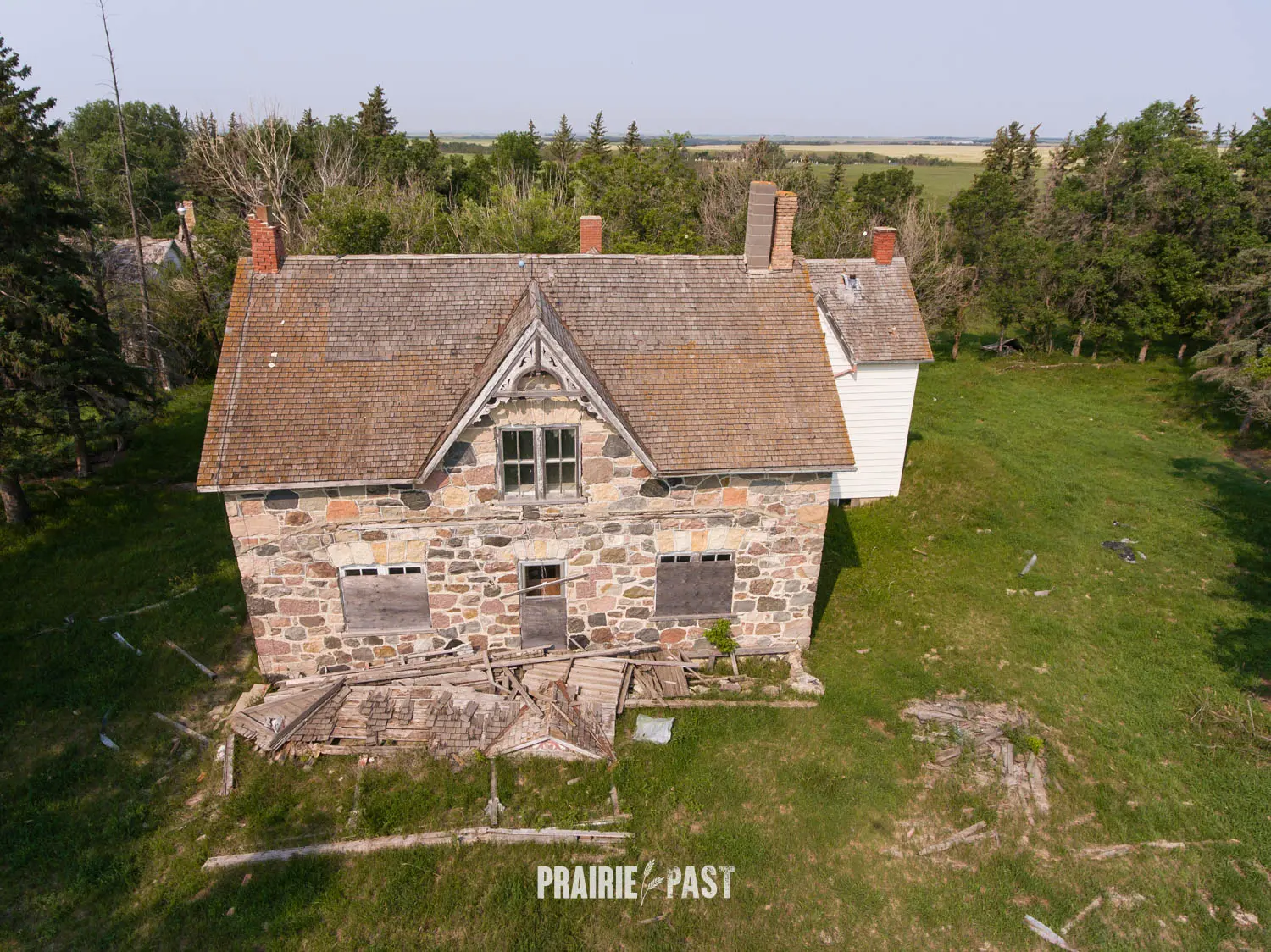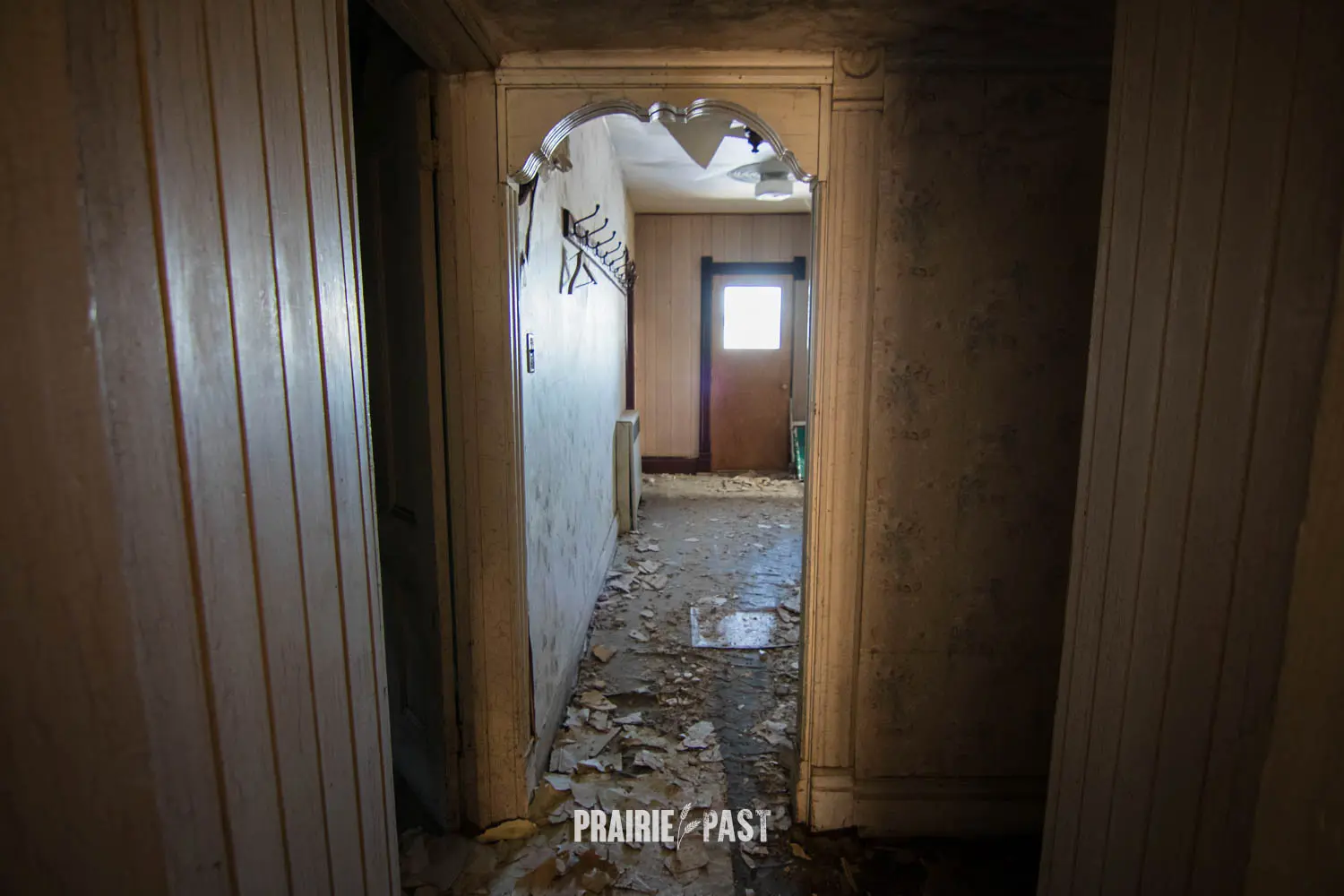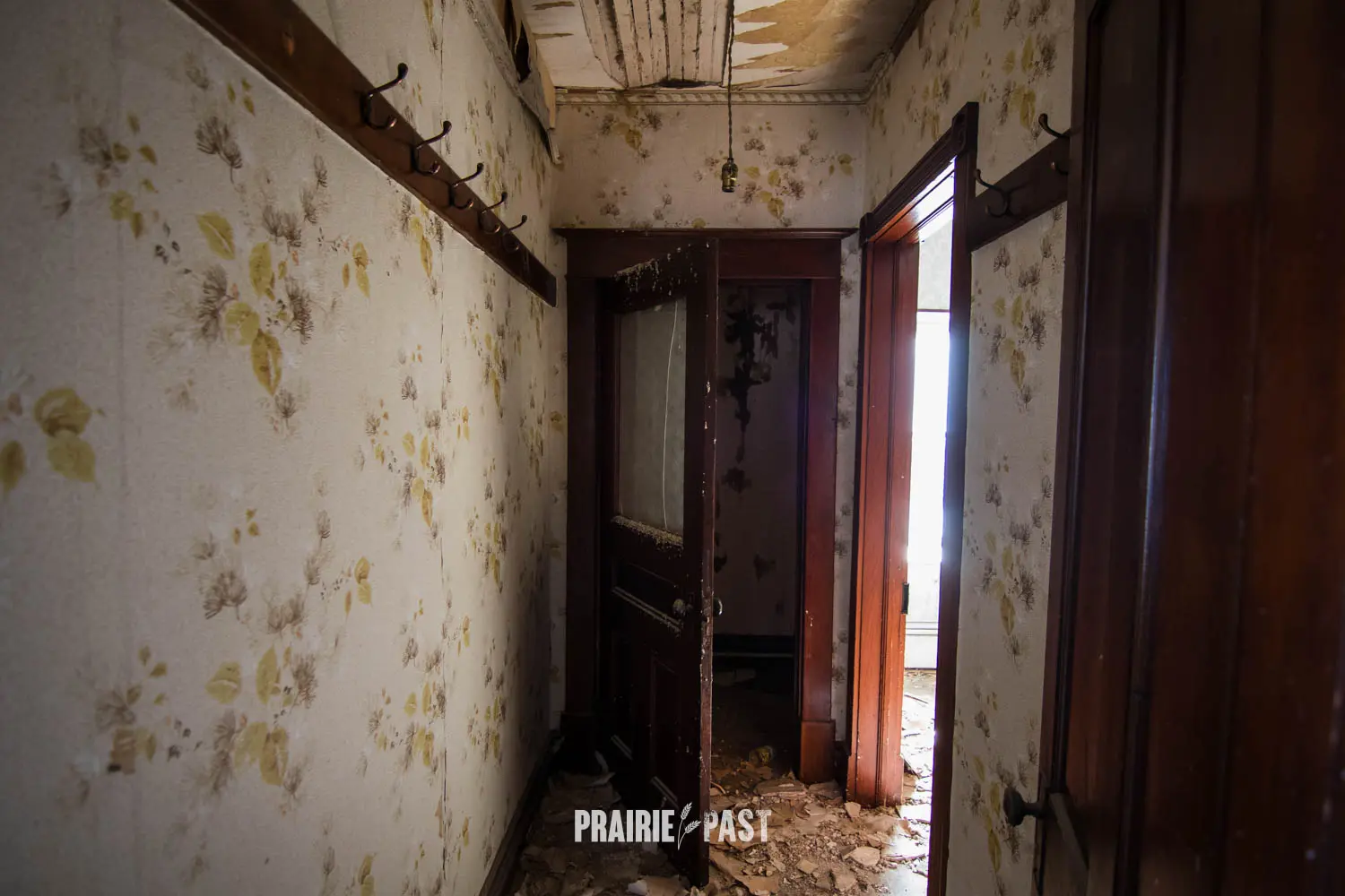 This house is set off the road a bit and is fenced and we did not want to trespass. After years of passing by when we were in the area, we made a connection with another explorer and got permission to access the site. It was for sale and went to visit with the new potential owners. When we reached the property it had an original small house and a large house which was a stone house with a large addition on the side/back. We did a full walkthrough and were able to come back one more time after the people we had originally gone with purchased the house.